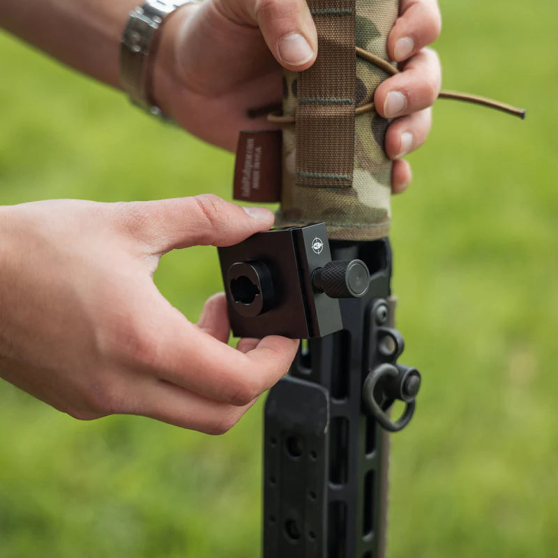 - Enables use of our Javelin Bipod in fixed target and traversable hunting modes