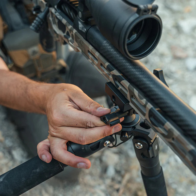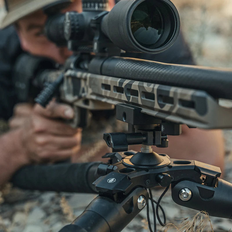 Designed for high-energy precision rifles with 1.5" Arca Swiss rails, the HD Disc-Lok Adapter for Arca Swiss features an ergonomic control knob for easy forward and rearward adjustability along the rail. It securely clamps onto the Disc-Lok spigot, ensuring maximum stability while also offering adjustable friction control for precise traverse movements.