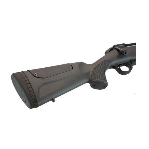 The Sabatti Rover Hunter rifle comes with a polymer stock which combines a classic style and lightness with improved ergonomics, ending in a soft recoil pad which helps tame the heavier calibers kick. The stock comes with a removable cheek rest and a shim to adjust the stock length of pull. On request, also available an optional kit with two cheek rests and two additional recoil pad shims. A multipurpose steel plate is embedded in the forearm, allowing the mount of rails, bipods and other accessories.