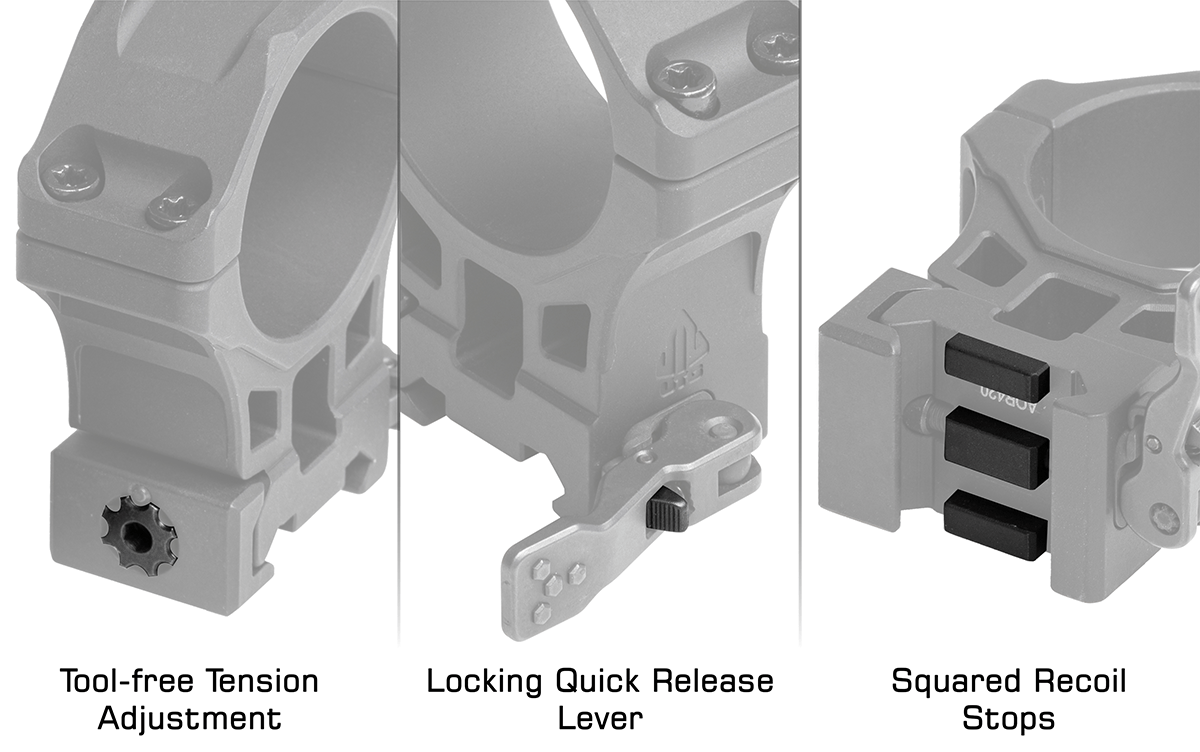 - Quick Release (QR) Mount Features Tool-free Tension Adjustment, Locking Quick Release Lever, and Squared Recoil Stops for a Secure Zero Hold and Return to Zero